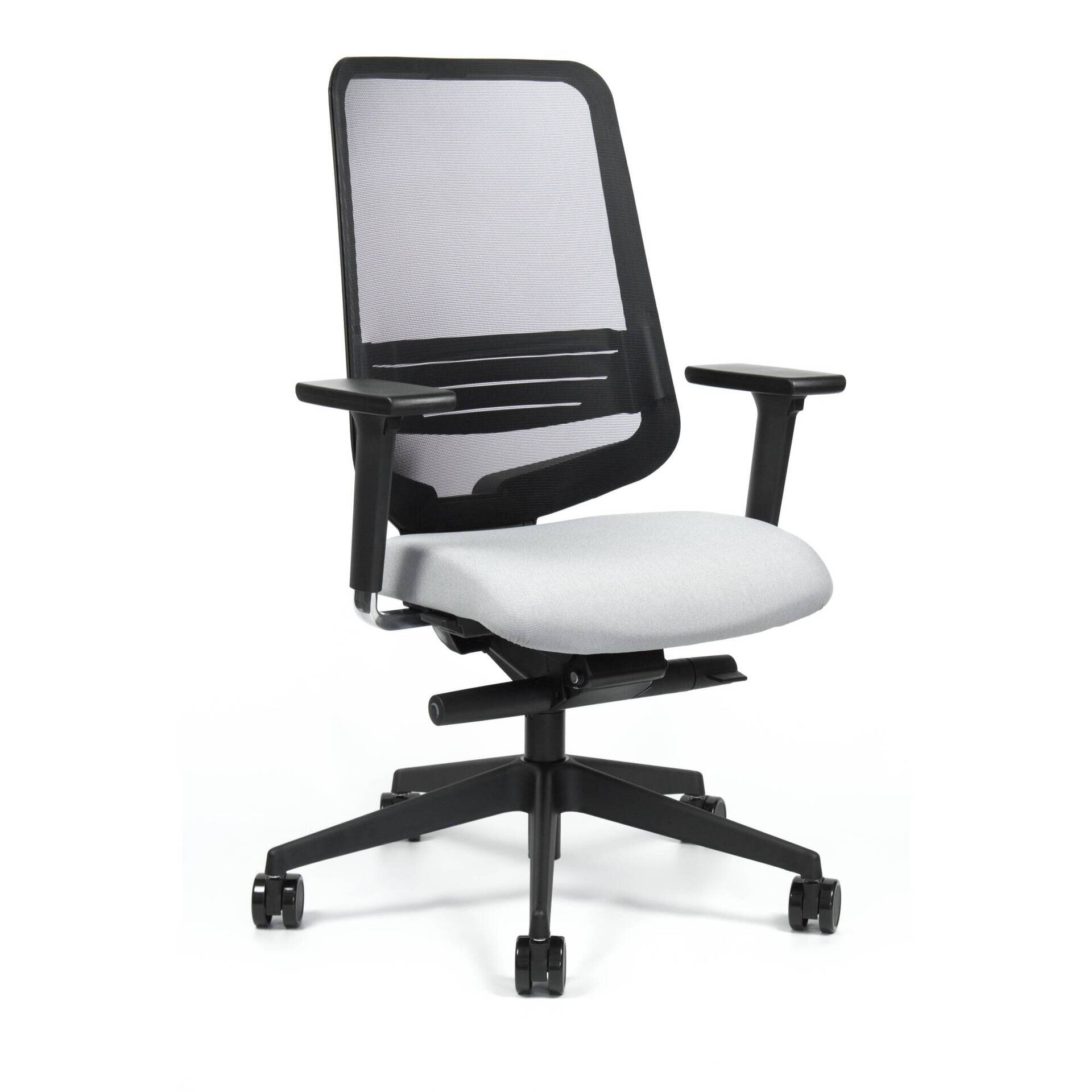 Pohyblivé operadlo vďaka otočným bodom v ráme chrbtovej opierky Vynikajúca podpora a komfort Vysoko funkčné odolné materiály, vysoká estetická úroveň Mechanizmus Synchro Motion, 3D ramená Sieťová chrbtová opierka